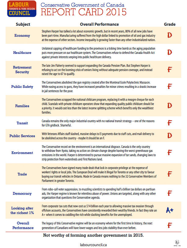 Conservative Gov’t of Canada Report Card 2015 by Labour Council of Toronto & York Region